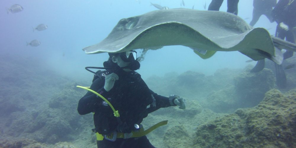 This dive site is located directly in front of the harbour of Las Galletas and is reached by a short boat drive from the same. In general, we anchor at a depth between 12 and 15 meters and then dive down to about 22 meters to the nearby reef. Of late, Aquarium has become one of the most popular dive sites in Tenerife and has replaced another site known as  ‘Stingrays’ as the location with the largest rays’ population.